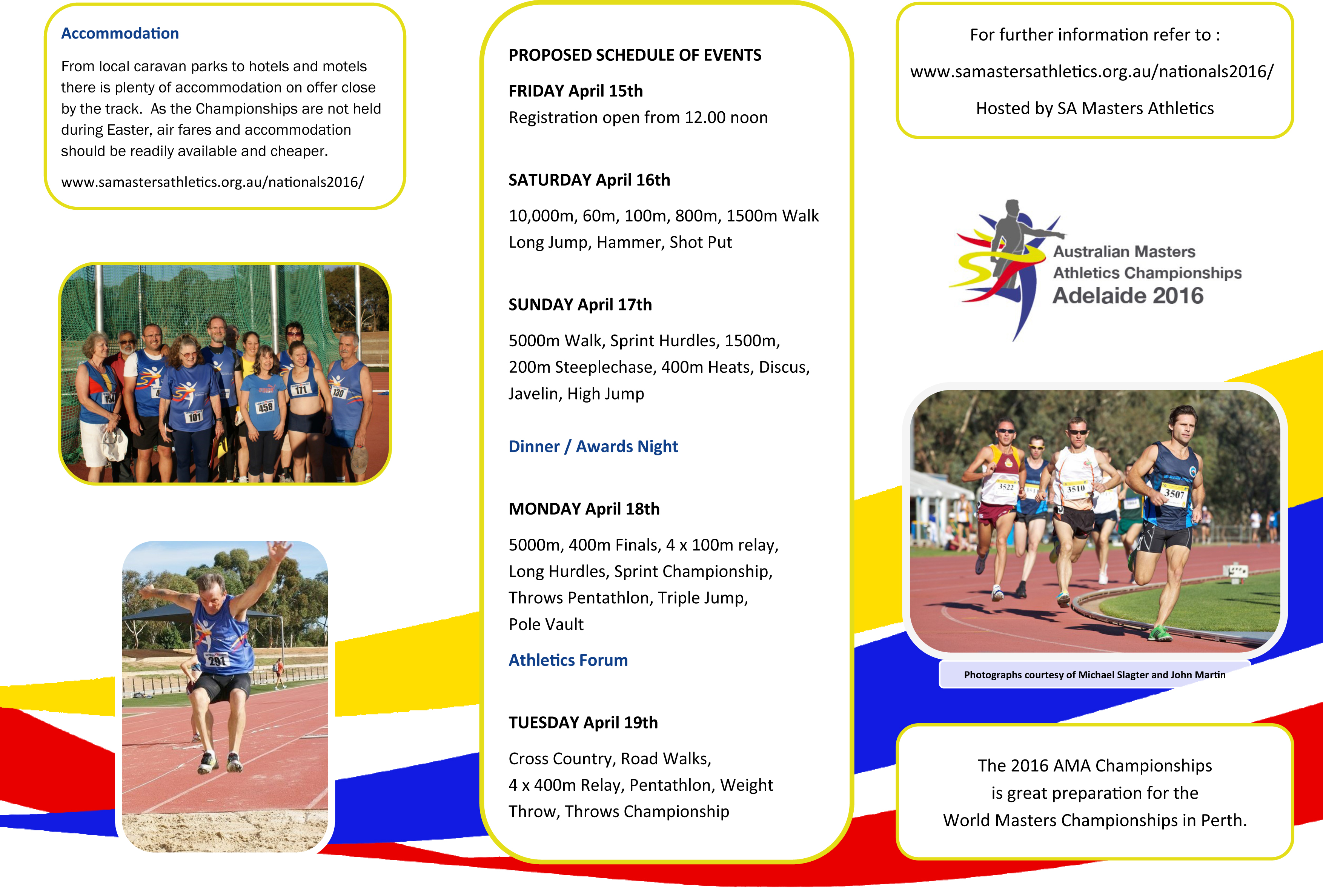 AMA Champs Adelaide 2016 View Larger Image Put this in your diary. The Australian Masters Athletics Championships 2016. This is the ideal lead up to the World Champs in Perth 2016. No Qualifications = Everyone can compete. Russ Dickenson2017-02-08T11:05:28+11:00June 30-th, 2015| Share This Story, Choose Your Platform! FacebookTwitterLinkedInPinterestEmail Related Posts Results 2017 VMA 10 Mile Road Race – Princes Park August 22-nd, 2017 Results 2017 VMA 10k Road Race – Eric Greaves Memorial August 21-st, 2017 Results 2017 VMA T & F Pentathlon March 7-th, 2017 Records Update December 22-nd, 2015 2015 AMA – VMA 20km Road-Walk Championships June 25-th, 2015